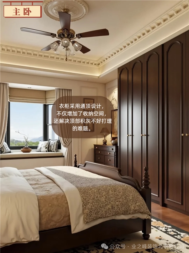 步入主卧,木质通顶衣柜的设计令人眼前一亮。它不仅最大化地利用了收纳空间,还有效解决了顶部积灰的清洁难题,体现了设计师对实用性与美观性的双重考量。飘窗则被打造成了一个休闲角,铺上柔软的坐垫,无论是晨起观景还是睡前阅读,都能让人在此找到一片宁静与放松的天地。